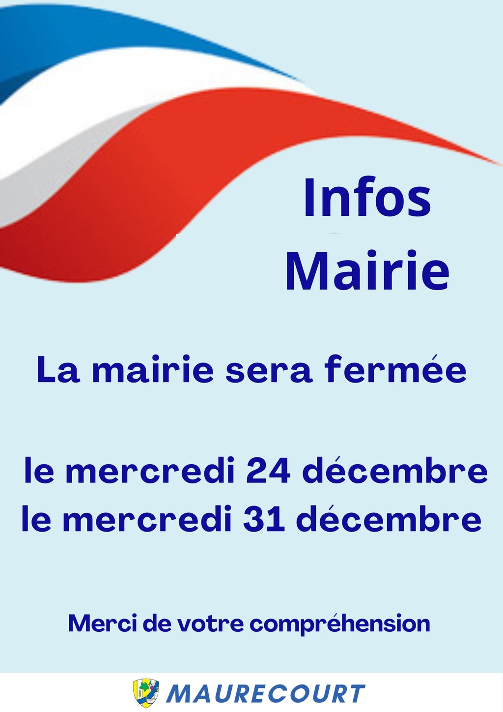 La mairie sera fermée les mercredis 24 et 31 décembre 2025
