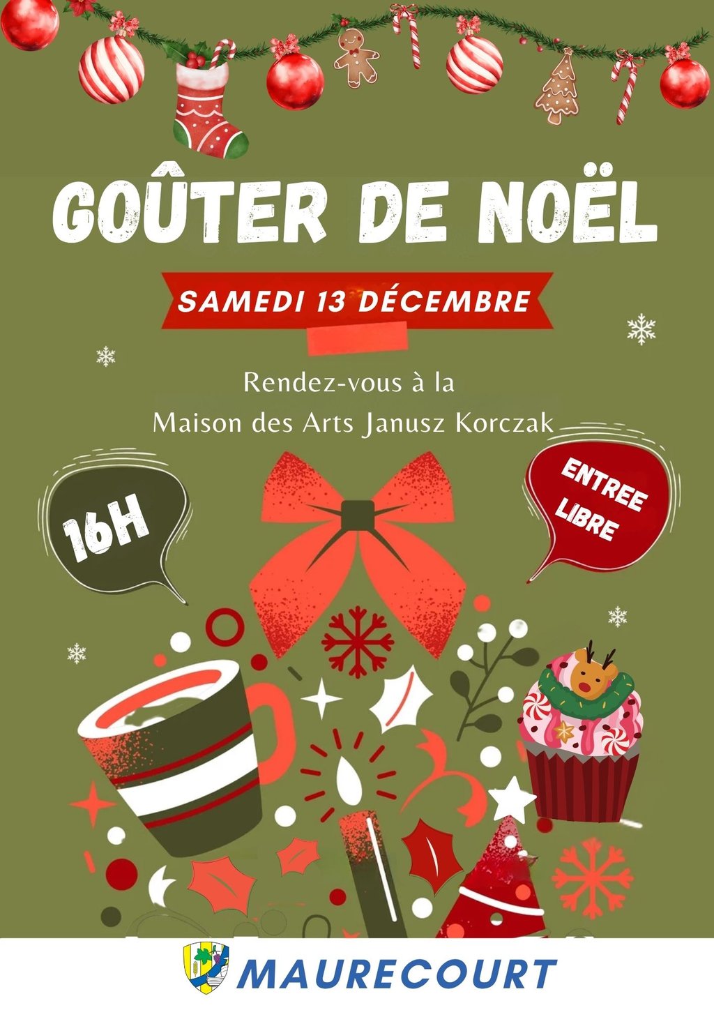 À l’occasion des ateliers de Noël proposés par les associations maurecourtoises, la mairie organise son traditionnel goûter de Noël ouvert à toutes et tous.