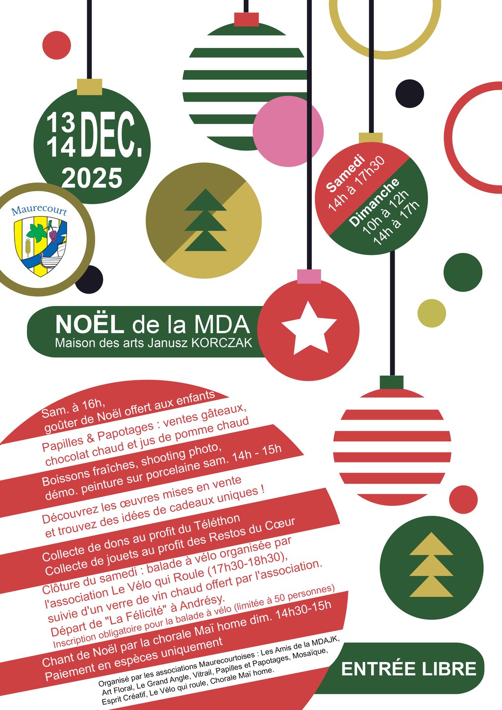 La Maison des Arts organise la seconde édition du Noël de la MDA les 13 et 14 décembre. L’événement sera ouvert au grand public et mettra en avant les associations locales pour valoriser la diversité des actions culturelles, artistiques et solidaires, tout en partageant un moment convivial autour de l’esprit des fêtes de fin d’année.