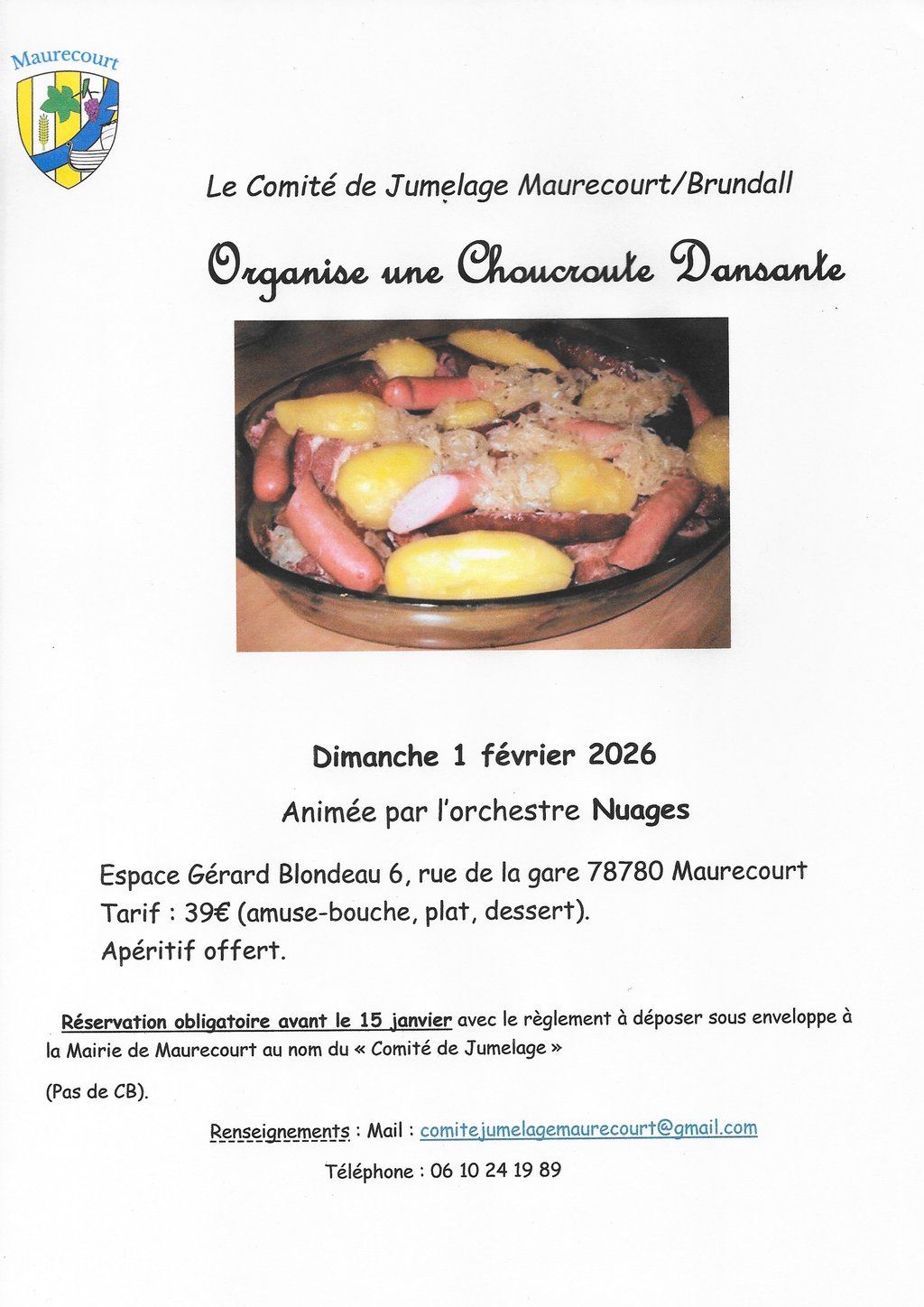 Réservation obligatoire avant le 15 janvier 2026 avec le règlement par chèque et à déposer sous enveloppe à la mairie de Maurecourt au nom du "Comité de jumelage"