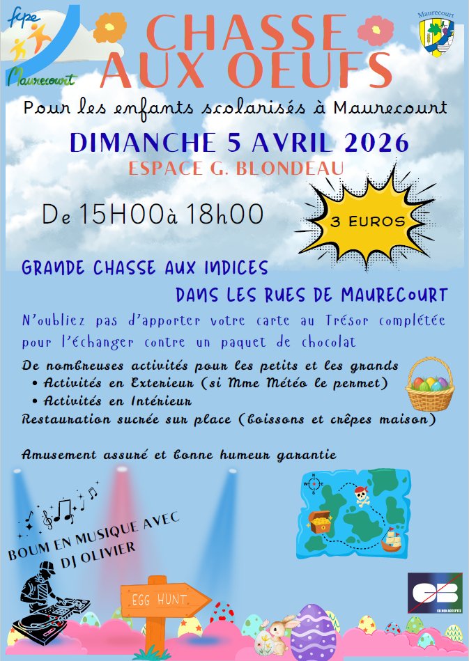 La FCPE a le plaisir d’inviter tous les enfants scolarisés à Maurecourt à une grande chasse aux œufs ! 🎉🍫